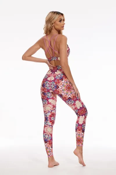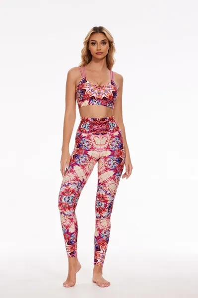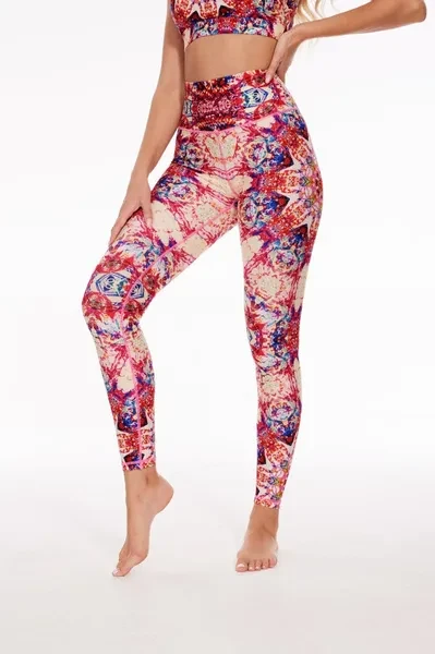 Pattern Description: The pattern draws inspiration from Mandala paintings, which represent an exotic style, often utilized in psychological therapy. It characterized by repetitive patterns revolving around a central point. Using colors like purplish-red, yellow, blue, and green, the overall design depicts an irregular yet symmetrical look. The intricate variations in lines and rich colors form a unique totemic style, evoking a sense of ancient and mysterious feeling. The pattern encourages you to introspect into the enigmatic inner world, aiming for healing and self-relief during your exercise routine. Product Features: High-waisted design perfectly shapes, supports and flatters any body types. No small elastic band at the top. No side seams for extra flattering fit and comfort. Stretchy and light fabric for a smoothing, second-skin feel. Fabric: Made with 84% RPET and 16% spandex from recycled plastic bottles and it is 100% recyclable! - Four-way stretch, breathable and anti-bacterial. Model Info: Evy // Height: 5'8  // Bust 33.9” //  Waist 24.4” // Hips 36.6 // SILVERWIND size Regular S