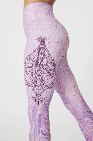 Pattern Description: Peaceful colors, graceful vibes and harmonious feelings. The print features a beautiful picture of the grass swaying in the wind and showing vitality under the nourishment from the earth and rain. The forest goddess, patroness of forests and animals, rises from the moving grass to celebrate female power and praise the contribution women make to society. Product Features: High-waisted design perfectly shapes, supports and flatters any body types No small elastic band at the top No side seams for extra flattering fit and comfort Pair it with our matching Goddess Strappy Bra for a totally unique and dreamy look Fabric: Made with 84% RPET and 16% spandex from recycled plastic bottles and it is 100% recyclable! - Four-way stretch, breathable and anti-bacterial. Model Info: Natali// Height: 5'7 // Bust 34.3” // Waist 24.4” // Hips 36.6//SILVERWIND size S in tops bottoms Poli/Height: 5'7 // Bust 33.5” // Waist 23.6” // Hips 35” //SILVERWIND size S in tops bottoms