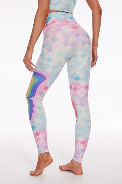 Pattern Description: The rainbow-colored butterfly pattern symbolizes the diversity and uniqueness of the LGBTQ community. The beautiful butterfly display the colors of the rainbow flags — red, orange, yellow, green, blue, and purple, representing the richness and variety of LGBTQ culture. The background has a dreamy fish scale pattern in pink, blue, yellow, and green, with glowing white sequins, creating a vibrant and fantastical feeling. At the center of the pattern, the colorful butterfly spreads its wings, symbolizing an open-hearted state of inner world. The pattern hopes to convey the care, kindness, and inclusivity that society extends to all LGBTQ individuals, also call on more people to give them inclusion and support. Product Features: High-waisted design perfectly shapes, supports and flatters any body types. No small elastic band at the top. Two side pockets for essentials. No side seams for extra flattering fit and comfort. Stretchy and light fabric for a smoothing, second-skin feel. Fabric: Made with 84% RPET and 16% spandex from recycled plastic bottles and it is 100% recyclable! - Four-way stretch, breathable and anti-bacterial. Model Info: Poli // Height: 5'7 // Bust 33.5” // Waist 23.6” // Hips 35” // SILVERWIND size Regular S