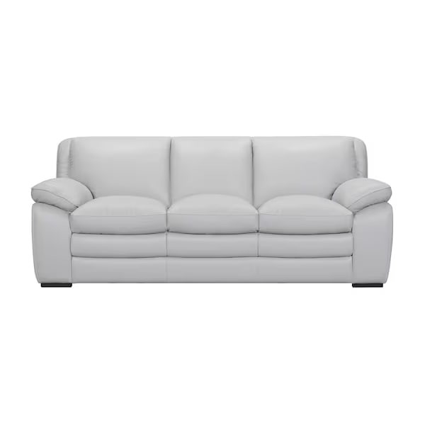 Zanna Contemporary Sofa in Genuine Dove Gray Leather with Brown Wood Legs